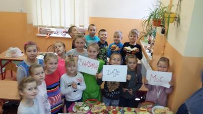 8 listopada nasza szkoła włączyła się do Ogólnopolskiej akcji edukacyjnej „Śniadanie daje moc” organizowanej w ramach Europejskiego Dnia Zdrowego Jedzenia i Gotowania. Przed przygotowaniem zdrowych, pysznych i kolorowych kanapek odbyła się pogadanka na temat roli śniadania, będącego najważniejszym posiłkiem w ciągu dnia. To dzięki niemu mamy energię i siłę do nauki i zabawy. Ponadto uczniowie dowiedzieli się, że bardzo ważne jest spożywanie pięć posiłków w ciągu dnia. Wtedy nasz organizm będzie cały czas nasycony i nie będziemy sięgać po niezdrowe przekąski. Należy unikać spożywania produktów wysoko przetworzonych, np. chipsy, które nie mają żadnych wartości odżywczych. Uczniowie dowiedzieli się także, że należy pić dużo wody mineralnej i unikać szkodliwych napojów gazowanych. Zgodnie wszyscy ustalili, że nie można również zapomnieć o odpowiedniej ilości ruchu