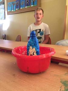 Dzisiaj byli u nas goście z Włoch - Ana z Wenecji i Valerio z Rzymu. Poprzez eksperyment naukowy - budowę wulkanu - tłumaczyli dzieciom jak działają wulkany i opowiadali o wulkanach we Włoszech. Zajęcia prowadzone były w języku angielskim. Po przeprowadzonym eksperymencie uczniowie mogli porozmawiać z gośćmi, a sympatyczni Włosi z radością odpowiadali na każde pytanie.