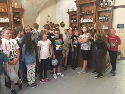 Wycieczka do muzeum farmacji odbyła sie 14 czerwca 2017r. Był to pamiętny dzień, w którym pod przewodnictwem pań Karoliny, Agnieszki i Ani klasy 4-6 wyruszyły ochoczo autokarem spod bram naszej placówki. Najpierw obejrzeliśmy stara aptekę, skryta w podziemiach pięknej kamienicy. Tam, pani przewodniczka opowiadała jak działały ówczesne apteki wprowadzając nas w magiczny świat ziół o leków. W klimatycznych pomieszczeniach, przypominających Komnaty czarnoksiężkniów uczniowie naszej szkoły z zapartym tchem słuchali wykładów pani przewodniczki. Potem udawaliśmy sie na wyższe piętra budynku, gdzie można było zobaczyć bardziej współczesne sprzęty i mikstury. Na koniec dzieci wraz ze swoimi ukochanymi paniami nauczycielkami udały sie do sali, gdzie przygotowano dla nich warsztaty tworzenia pasty do zębów. Z naturalnych składników i przecudnie pachnących olejków eterycznych powstały próbki zdrowej i skutecznej pasty do zębów, które dzieci mogły zabrać do domów i wypróbować na własnych... zębach