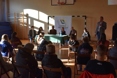 11 października uczniowie klas starszych uczestniczyli w spotkaniu, z przedstawicielami władz Gminy Długołęka i pracownikami Urzędu, na temat MRG, czyli mającej powstać w najbliższej przyszłości Młodzieżowej Radzie Gminy
