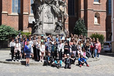 18 maja br. uczniowie klas IV- VIII uczestniczyli w projekcie ,,Poznaję stolicę Dolnego Śląska” dofinansowanym przez Ministerstwo Edukacji i Nauki w ramach programu ,,Poznaj Polskę”. Pierwszym punktem wycieczki była lekcja przyrodnicza pt. ,,Poznajemy tajemnice roślin” przeprowadzona przez nauczyciela biologii w Ogrodzie Botanicznym. Uczniowie wysłuchali krótkiej prelekcji na temat charakterystyki stref roślinnych występujących w ogrodzie, a następnie wykonali karty pracy, które zmobilizowały dzieci do bacznej obserwacji przyrody. Potem uczestnicy wycieczki udali się do oddziału Muzeum Narodowego we Wrocławiu – Panoramy Racławickiej - gdzie podziwiały monumentalne dzieło Jana Styki i Wojciecha Kossaka powstałe przy współpracy z innymi malarzami z okazji setnej rocznicy bitwy pod Racławicami. Uczniowie mogli obejrzeć malarską wizję przebiegu bitwy oraz wysłuchali informacji o historii obrazu. Dzięki wizycie w Muzeum Narodowym i Ogrodzie Botanicznym dzieci poznały ciekawe miejsce na turystycznej mapie Wrocławia i może powrócą tam jeszcze w przyszłości.