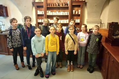 Klasa 4 wybrała się na wycieczkę do Muzeum Farmacji, gdzie uczniowie mogli podziwić pracownie alchemiczną, wystawę poświęconą lekowi naturalnemu i dawnym narzędziom do produkcji środków leczniczych a także ekspozycję przedstawiającą analityczną aparaturę pomiarową. Dzieci aktywnie uczestniczyły w lekcji muzealnej i wykazały się dużą wiedzą. Następnie klasa 4 brała udział w warsztatach samodzielnego wykonania słodkości z karmelu z dodatkiem naturalnych barwników w Manufakturze Słodyczy „Słodkie Czary Mary”. Wycieczka była bardzo udana i humory dopisywały :)