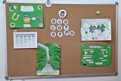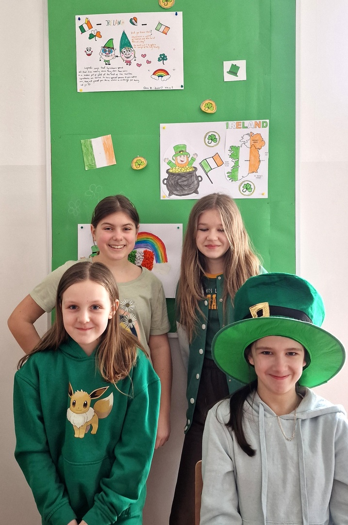 W dniach 13-17 marca 2023 nasza szkoła brała udział w ogólnopolskim wydarzeniu kulturowy Saint Patrick’s Day. W tym czasie uczniowie mieli okazję zapoznać się z elementami kultury, historii, zwyczajów Irlandii. Klasy zostały ozdobione zielonymi koniczynkami , 17 marca odbył się quiz wiedzy o Irlandii i dniu świętego Patryka a uczniowie, uczennice oraz nauczyciele uczcili ten dzień zakładając ubiór w tradycyjnym zielonym kolorze.