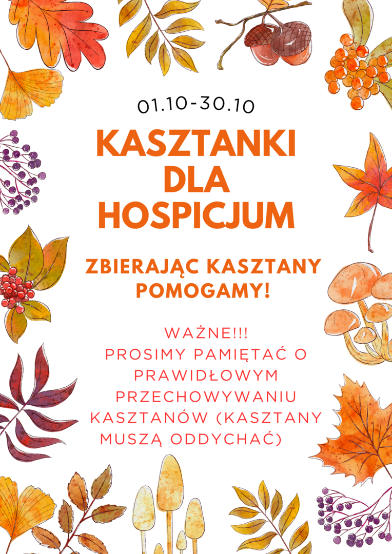 4. Kasztany przynosimy do swoich sal lekcyjnych, z których będą odbierane przez koordynatora zbiórki p. Mateusza Leszczyńskiego.
