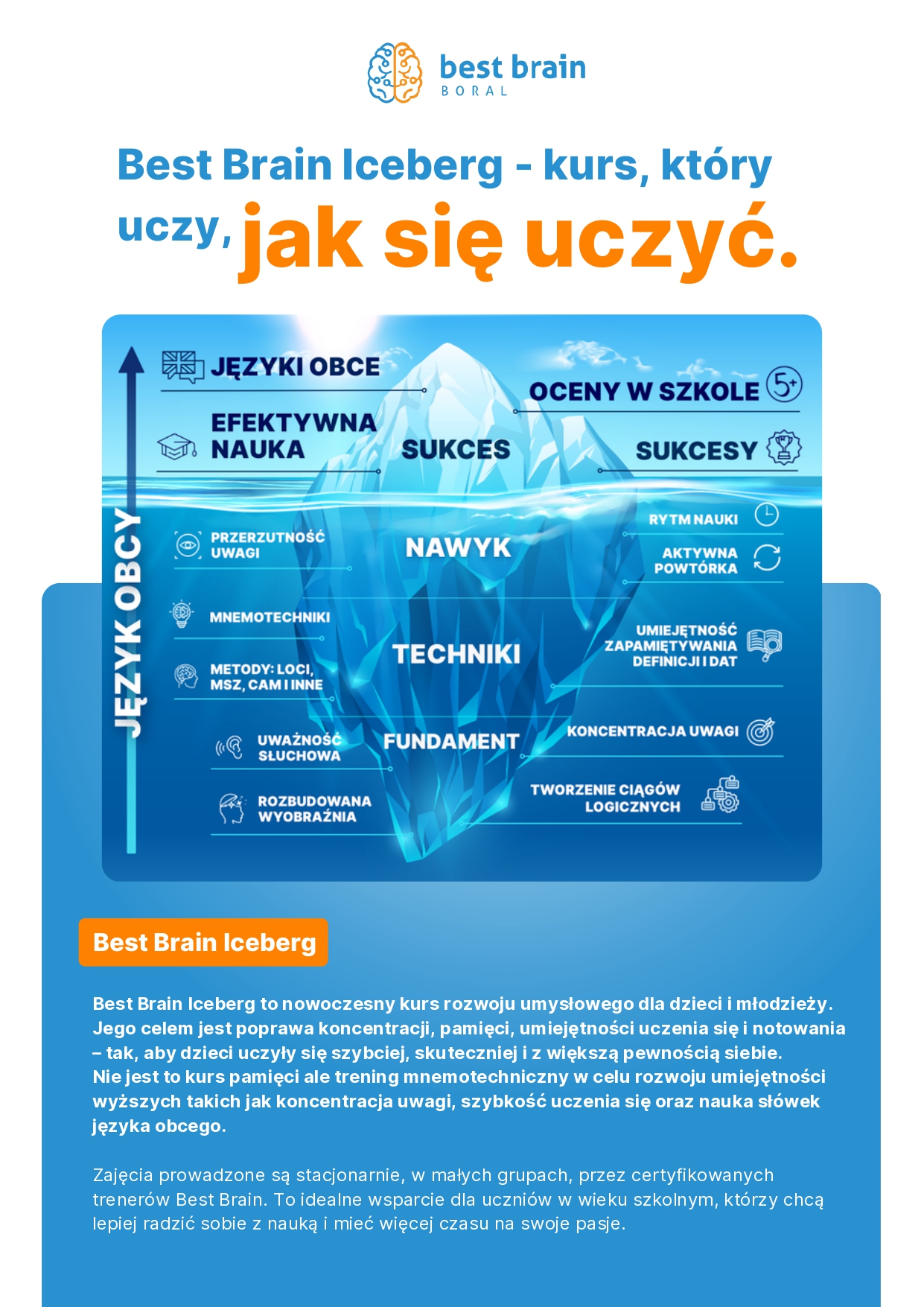 Kurs Best Brain Iceberg - to nowoczesny program rozwoju umysłowego, który uczy dzieci i młodzież jak skutecznie się uczyć.