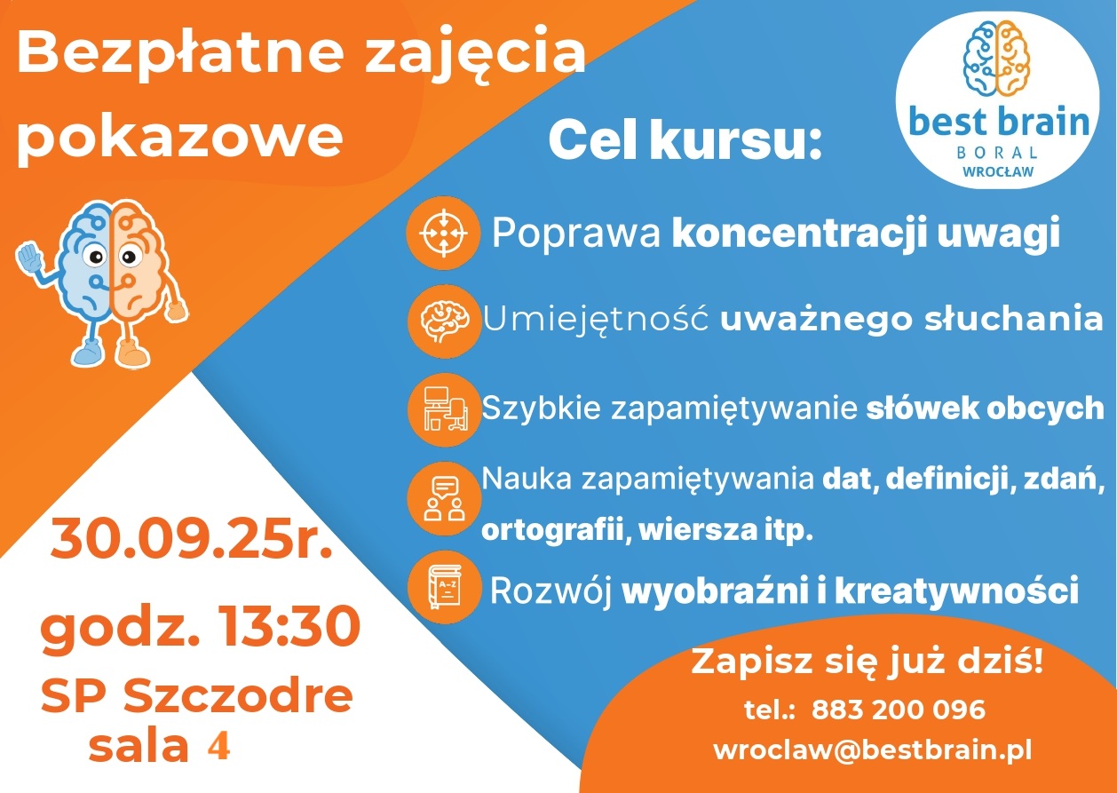 Już 30.09.25 r. o godz. 13:30 w sali 4, w naszej szkole ruszają wyjątkowe zajęcia rozwijające pamięć, koncentrację i techniki uczenia się.